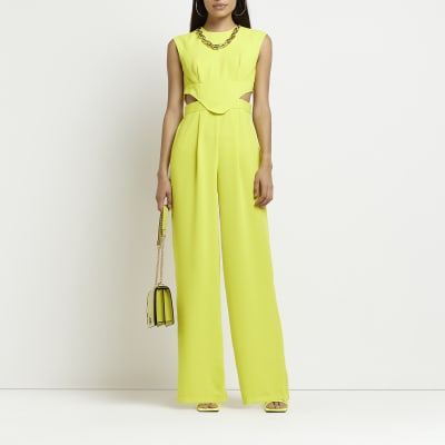Lime Cut Out Wide Leg Jumpsuit River Island